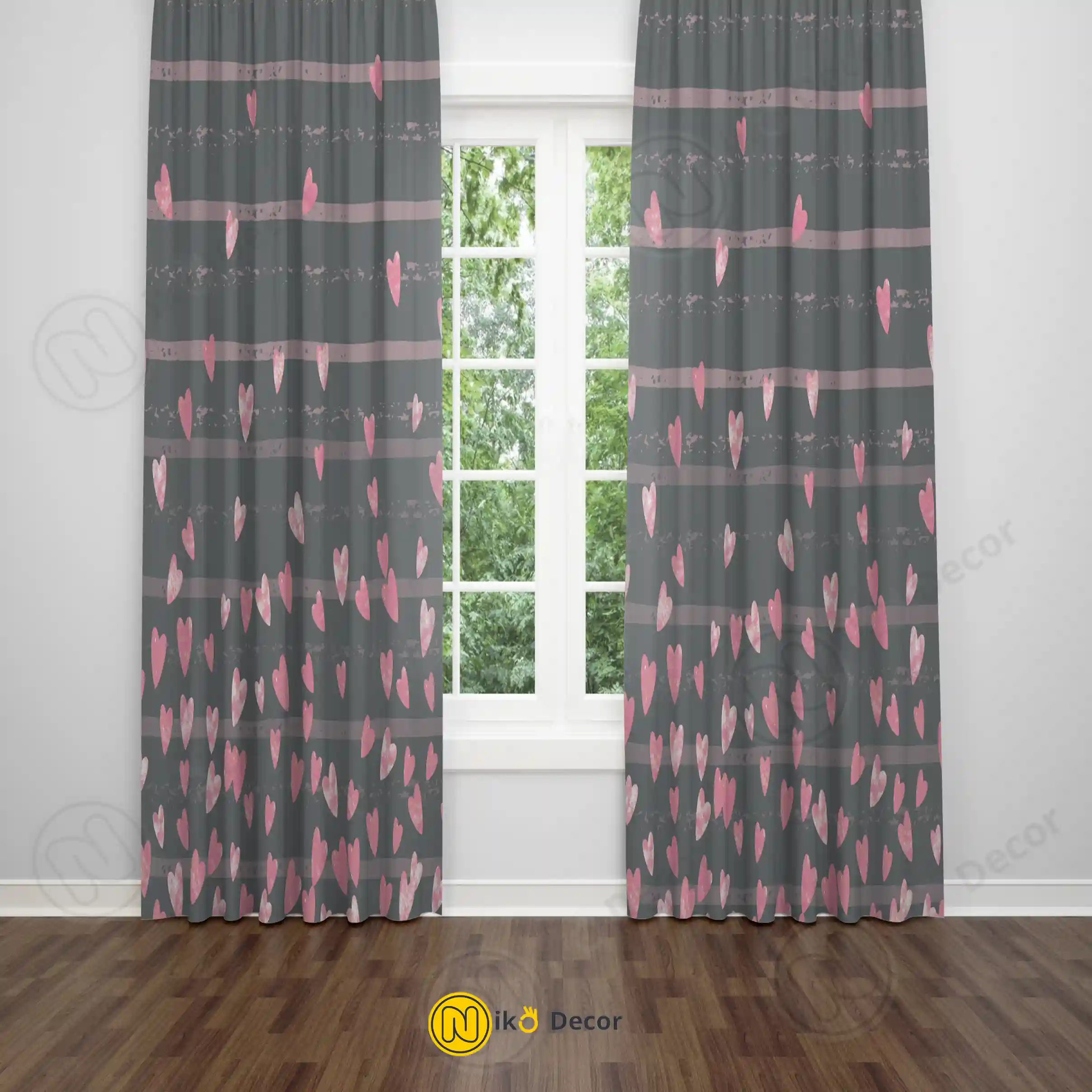 ست پرده مخمل یا هازان اتاق خواب طرح قلبی